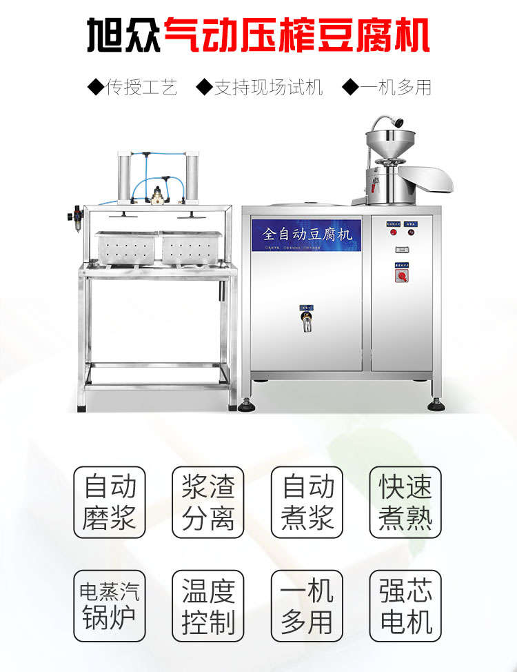 XZ-100型全自動(dòng)豆腐機(jī),商用全自動(dòng)氣動(dòng)壓榨豆腐機(jī)氣動(dòng)壓榨,分離漿水,不傷豆腐,定型美觀。