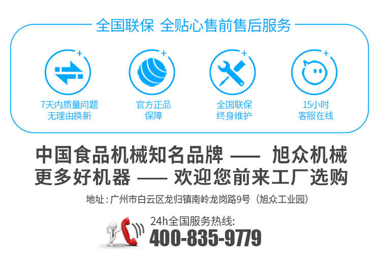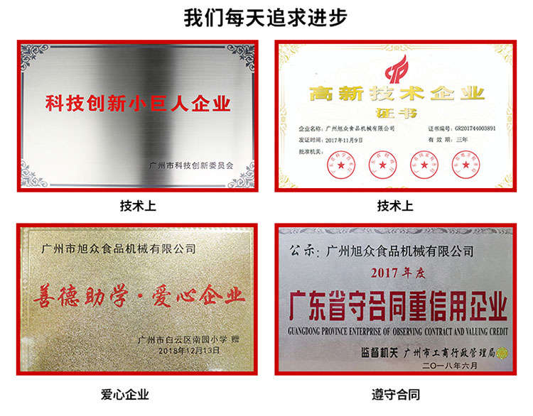 廣州旭眾食品機(jī)械有限公司是一家集科研開(kāi)發(fā),生產(chǎn)設(shè)計(jì),營(yíng)銷服務(wù)為一體的現(xiàn)代化生產(chǎn)企業(yè)?,F(xiàn)代化生產(chǎn)車間,精湛制造技術(shù),所產(chǎn)機(jī)械歷經(jīng)市場(chǎng)重重考驗(yàn),不斷贏得海內(nèi)外客戶的贊譽(yù)。