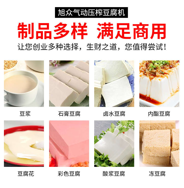 XZ-300型氣動(dòng)壓榨豆腐機(jī),智能豆腐豆?jié){機(jī),雙桶煮漿高效生產(chǎn)現(xiàn)磨現(xiàn)煮,漿渣分離快速出漿。機(jī)器運(yùn)行穩(wěn)定不銹鋼材質(zhì)打造,堅(jiān)固耐用,安全衛(wèi)生,時(shí)尚大方,易于清洗。