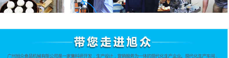 廣州旭眾食品機械有限公司是一家集科研開發(fā),生產(chǎn)設計,營銷服務為一體的現(xiàn)代化生產(chǎn)企業(yè)?,F(xiàn)代化生產(chǎn)車間,精湛制造技術,所產(chǎn)機械歷經(jīng)市場重重考驗,不斷贏得海內(nèi)外客戶的贊譽。