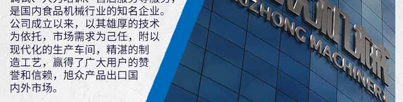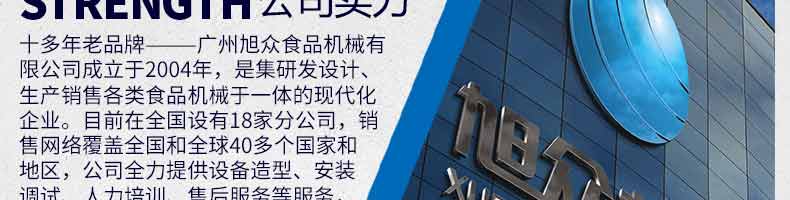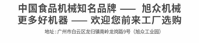 廣州旭眾食品機械有限公司是一家集科研開發(fā),生產設計,營銷服務為一體的現代化生產企業(yè)?,F代化生產車間,精湛制造技術,所產機械歷經市場重重考驗,不斷贏得海內外客戶的贊譽。