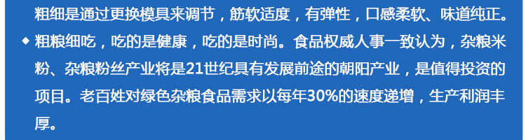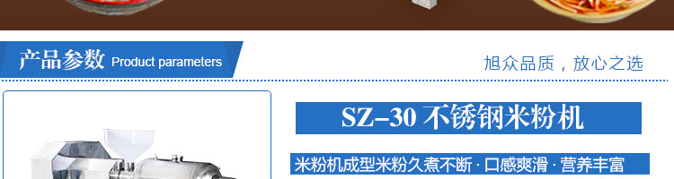 SZ-30不銹鋼米粉機,可生產(chǎn)米粉、米線、桂林米粉、過橋米線、年糕、糍粑等產(chǎn)品。各種形狀都可生產(chǎn)(圓、扁),加工食品外表光滑,厚薄、寬窄、粗細均勻可調,筋軟適度,有彈性,口感柔軟、味道純正。
