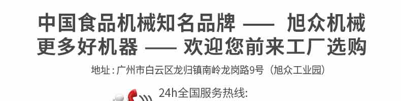 廣州旭眾食品機(jī)械有限公司是一家集科研開發(fā),生產(chǎn)設(shè)計(jì),營銷服務(wù)為一體的現(xiàn)代化生產(chǎn)企業(yè)?,F(xiàn)代化生產(chǎn)車間,精湛制造技術(shù),所產(chǎn)機(jī)械歷經(jīng)市場(chǎng)重重考驗(yàn),不斷贏得海內(nèi)外客戶的贊譽(yù)。