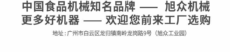 廣州旭眾食品機(jī)械有限公司是一家集科研開發(fā),生產(chǎn)設(shè)計(jì),營(yíng)銷服務(wù)為一體的現(xiàn)代化生產(chǎn)企業(yè)?,F(xiàn)代化生產(chǎn)車間,精湛制造技術(shù),所產(chǎn)機(jī)械歷經(jīng)市場(chǎng)重重考驗(yàn),不斷贏得海內(nèi)外客戶的贊譽(yù)。